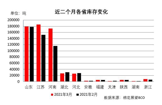 以上就是關于3月份,全國主要棉產地與消費地棉花周轉庫存情況。可以看出相較疫情期間,全國棉花周轉效率穩步提升,在發運量增加的情況下,依然實現了周轉庫存的下降。這也意味著從2、3月份以來,國內棉花市場已初步擺脫疫情影響,步入到增長的新常態。